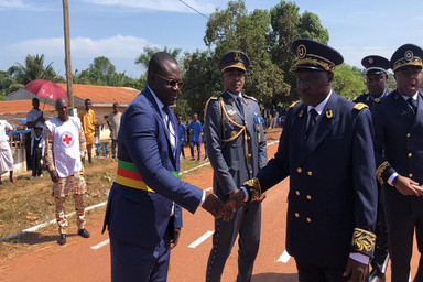Il est exactement heures lorsque le Numéro un du Département de la KADEY foule le sol de la place des fêtes. Il est accueilli par le Sous-préfet de l’Arrondissement de Batouri, le Commandant de compagnie de gendarmerie, Commandant d’arme de la place et le Maire de la Commune des